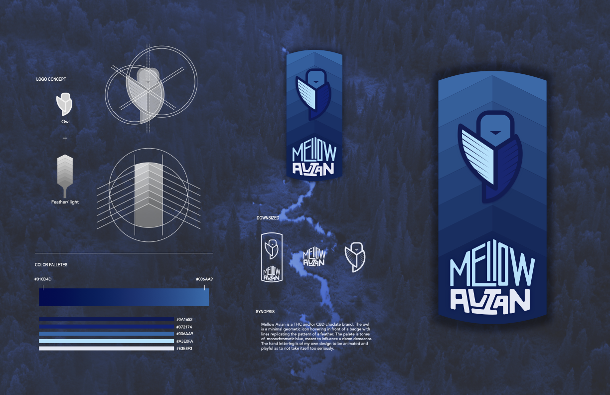 A cannabis infused chocolate bar branded with a an owl who I think captures the precise feeling a quality cannabis based product should convey. Welcoming and easy going.